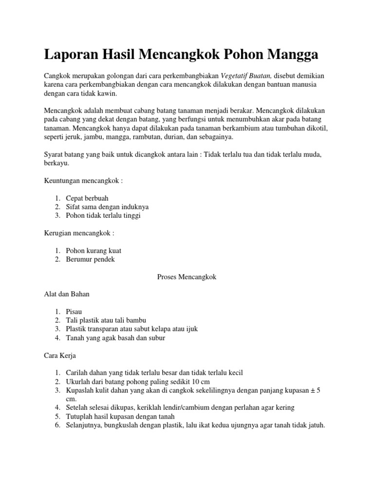 Laporan Hasil Mencangkok Pohon Mangga – Biology | Wukiresy’s …