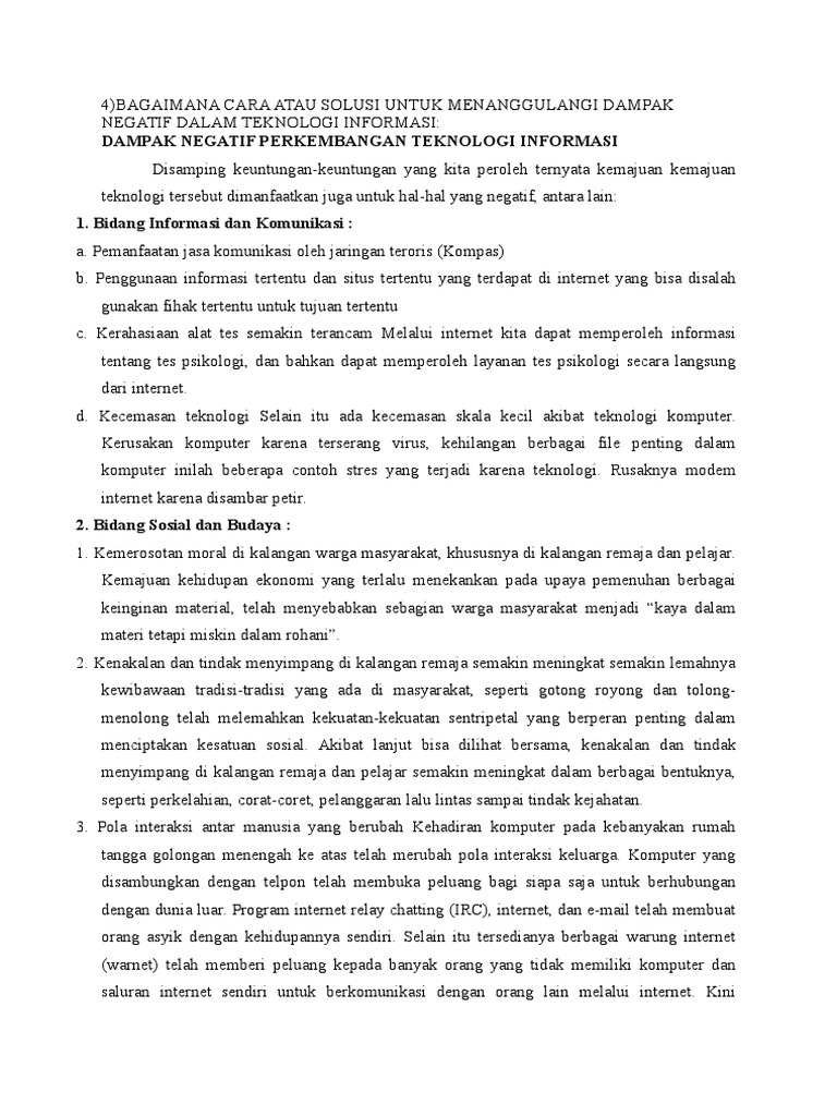 Dampak Negatif dari Perkembangan Teknologi Informasi dan cara …