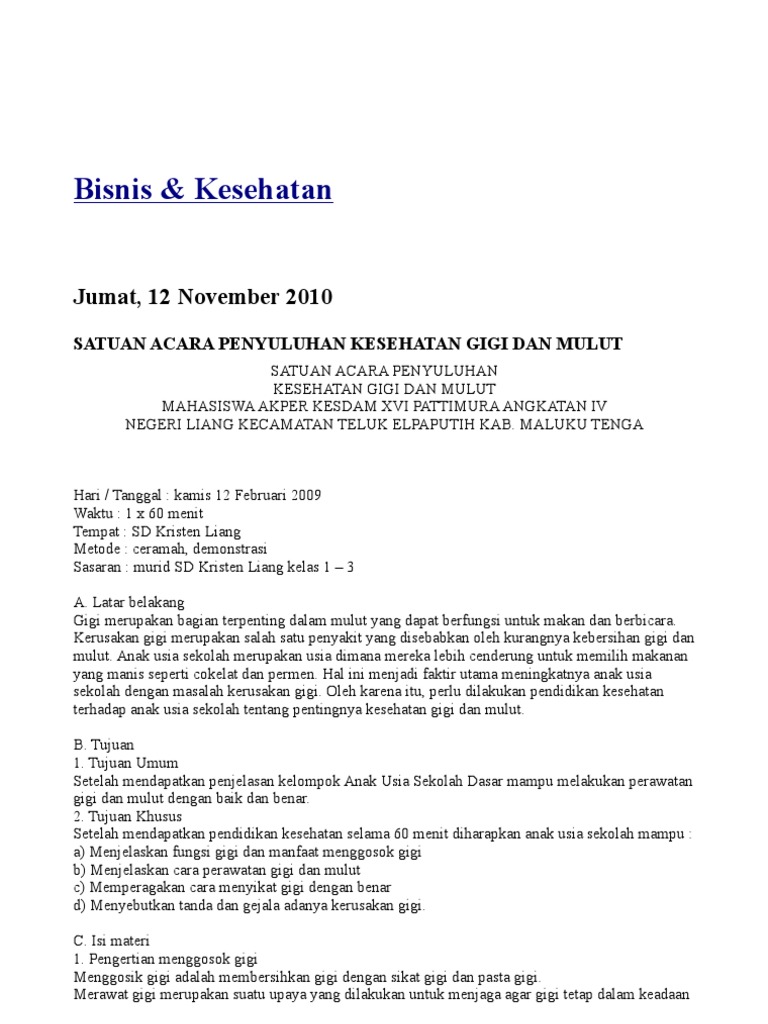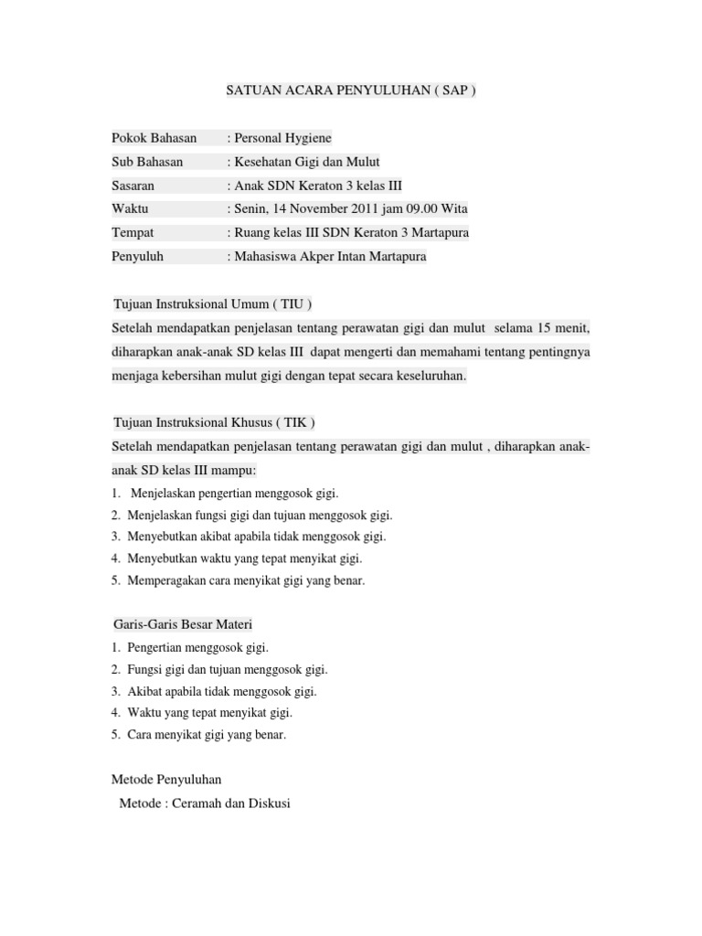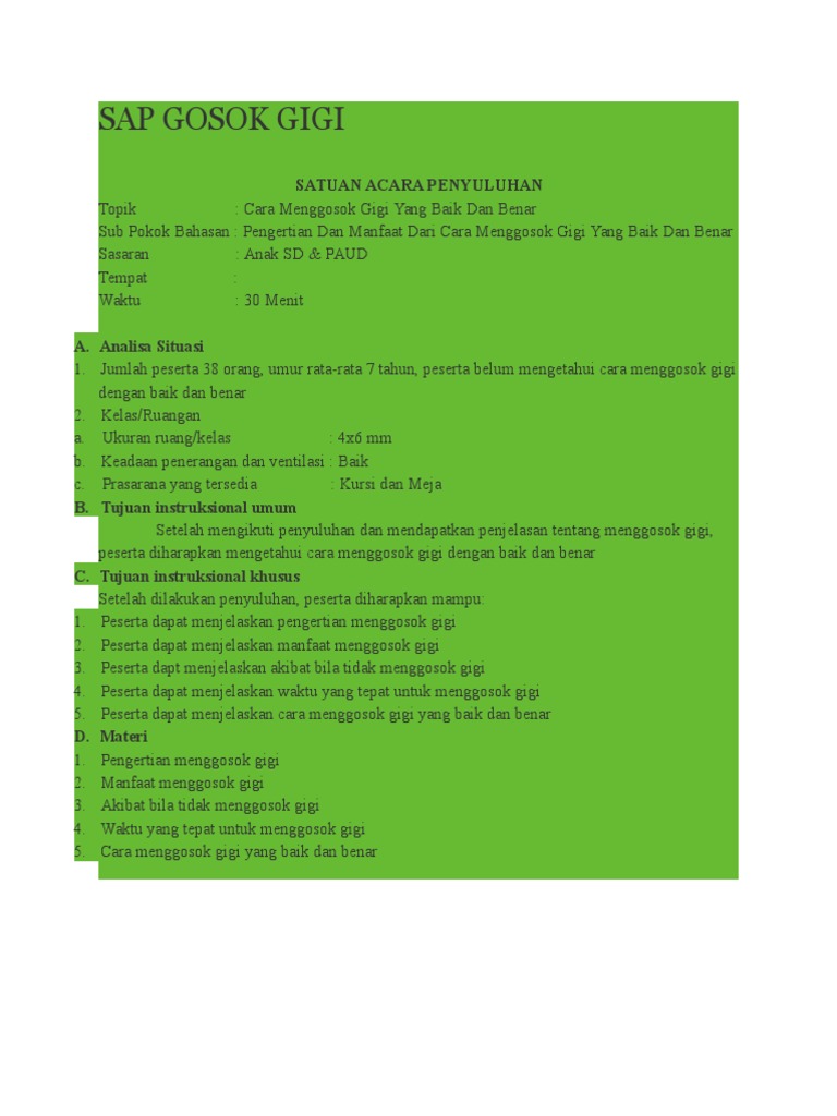 Satuan Acara Penyuluhan Cara Gosok Gigi Yang Benar
