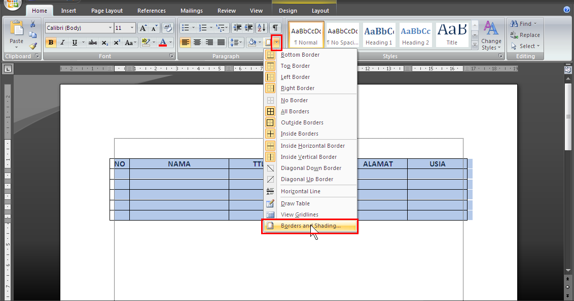 Cara Mempertebal Garis Pada Tabel di Microsoft Word 2007 …