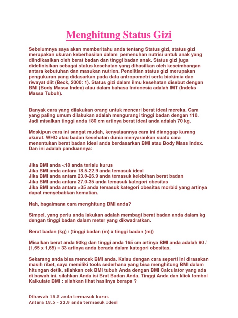 BMI Calculator - Dr. Indra K. Muhtadi - “dokter plus”