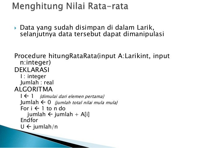 Bab 8 Array.pdf - BAB VIII LARIK(ARRAY 8.1 Tujuan Instruksional Khusus(TIK Setelah Menyelesaikan bab ini mahasiswa dapat 1 Menjelaskan tentang | Course Hero