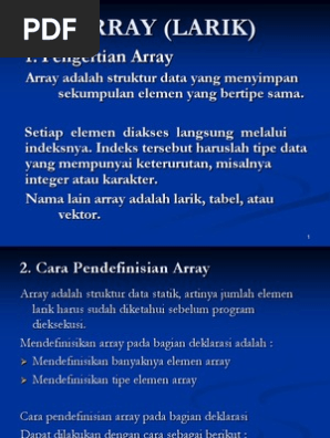 Array. Pengantar. int a, b, c, d, e; - PDF Free Download