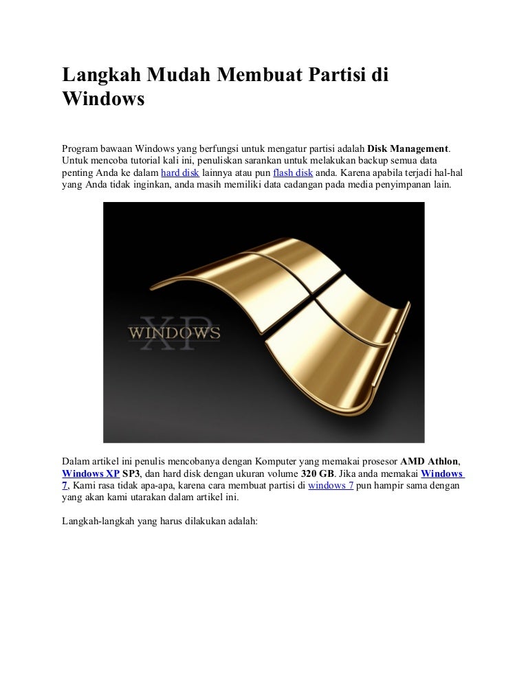 Cara bagi partisi hardisk di windows xp tanpa programvare …