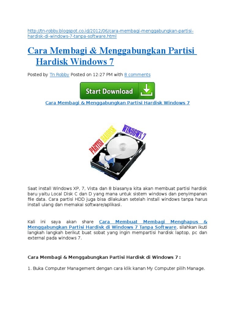 Cara Membagi & Menggabungkan Partisi Hardisk Windows 7 - Portal Magz