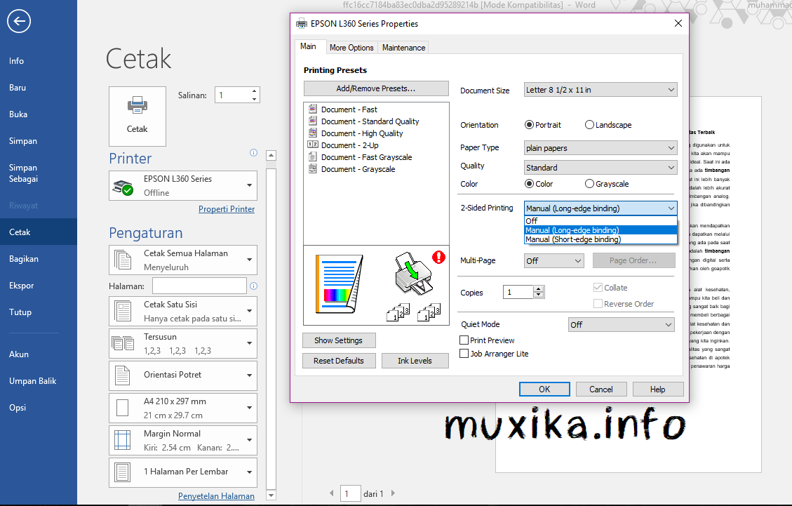 cara print booklet di office word 2016 Epson L360 - Informasi Pendidikan, Teknologi dan Travelling