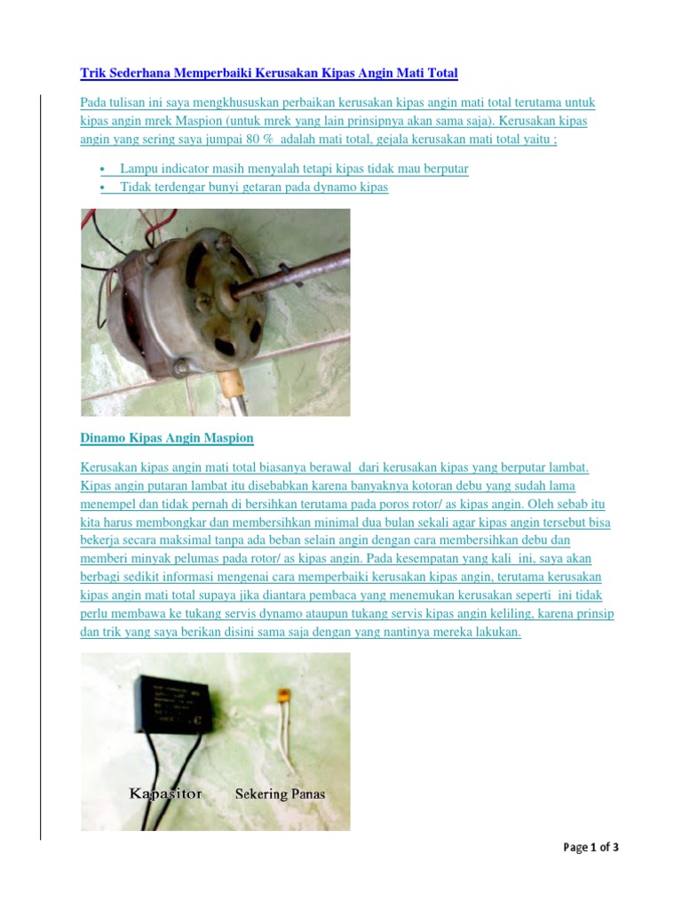Cara servis kipas Angin mati total tanpa bongkar dinamo.Karya …