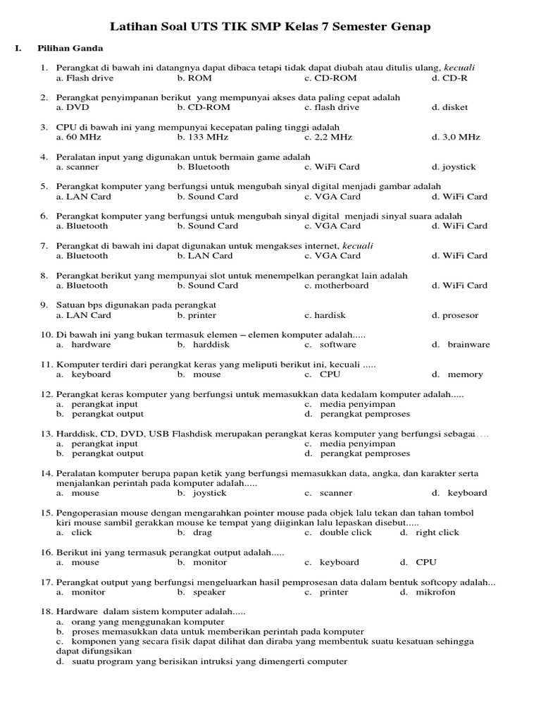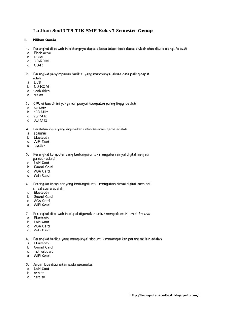 35+ Contoh Soal UTS TIK Kelas 7 SMP MTs Semester Genap