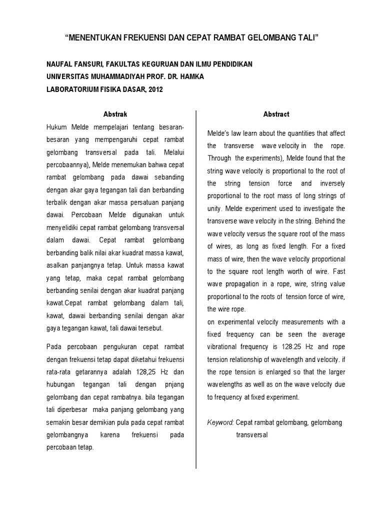 DOC) Percobaan 1 Gelombang Tali.docx | Sudirman Bajau - Academia.edu