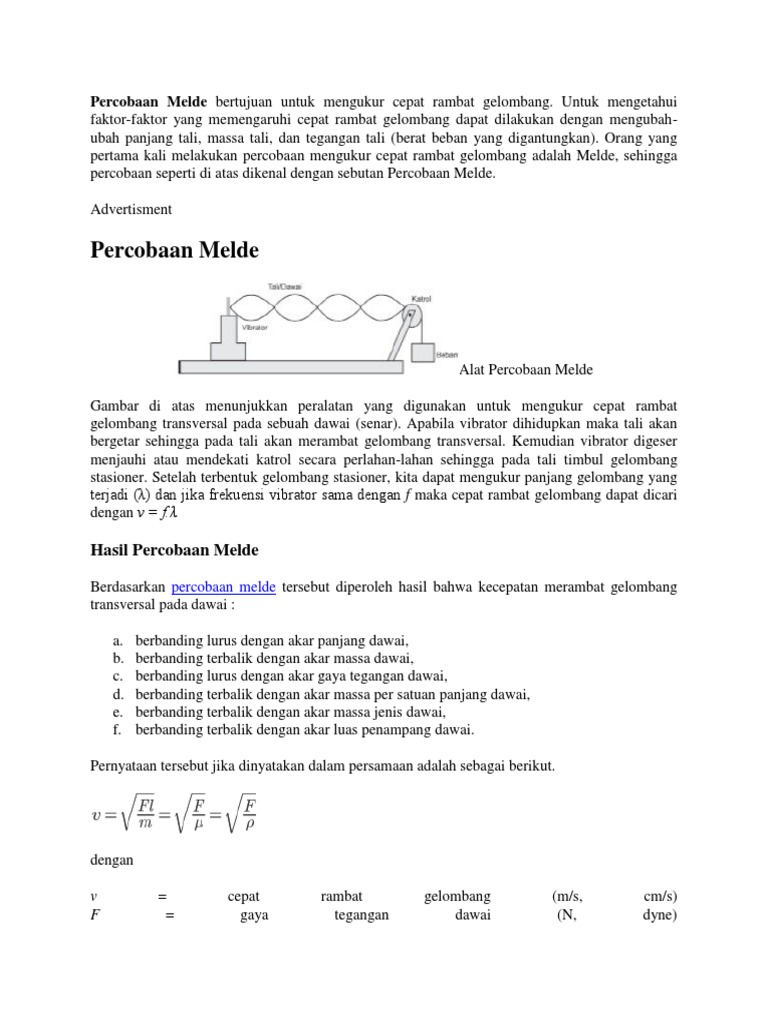 Hukum Melde - Cepat Rambat Gelombang Transversal pada Tali …