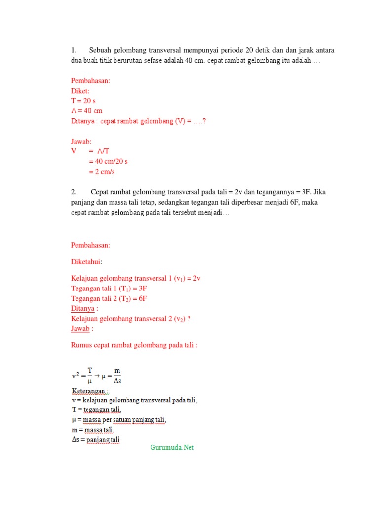 Rumus Cepat Rambat Gelombang Transversal | Guru Paud