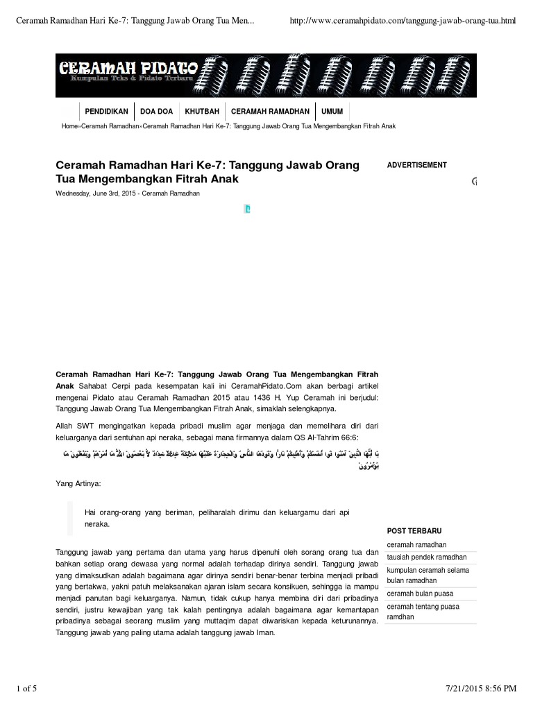 Ceramah Ramadhan Hari Ke-7_ Tanggung Jawab Orang Tua …