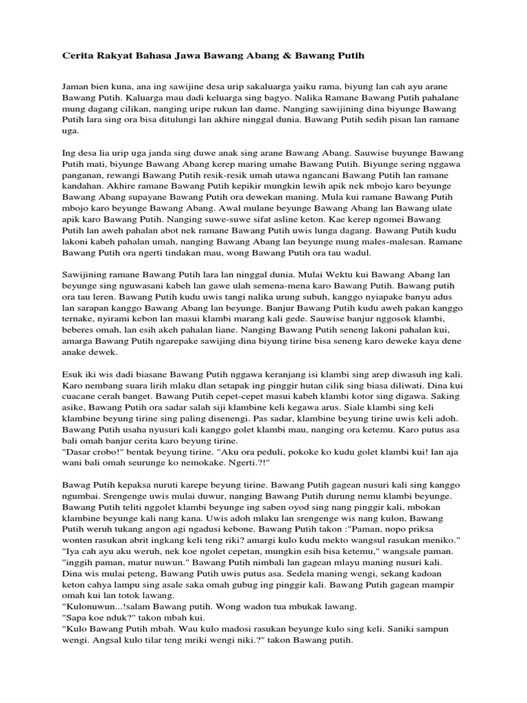 Naskah Bawang Merah Bawang Putih Bahasa Jawa - Berbagai Naskah
