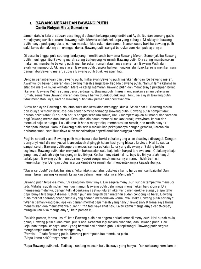 Cerita Rakyat Singkat “Bawang Merah Dan Bawang Putih” Dalam Bahasa …
