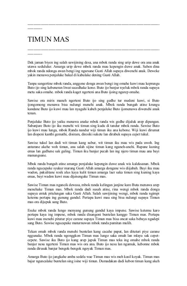 Contoh Cerita Rakyat Menggunakan Bahasa Jawa - Bagikan Contoh