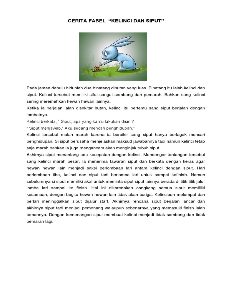 Fabel Kancil Dan Siput Lomba - [Download PDF]