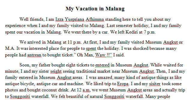 Contoh Recount Text Tentang Liburan Dalam Bahasa Inggris
