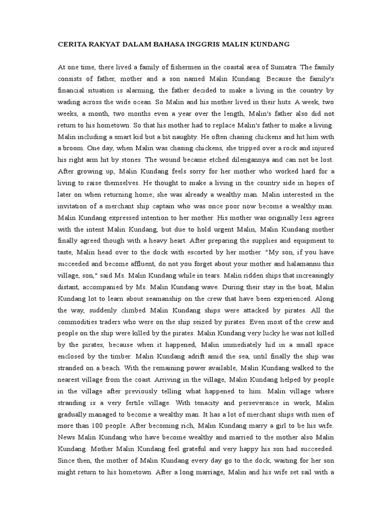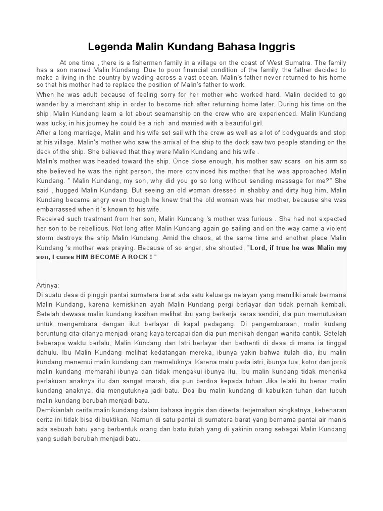 Contoh Cerita Malin Kundang Dalam Bahasa Inggris - Barisan Contoh