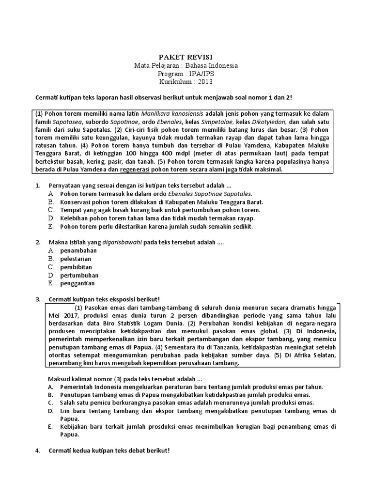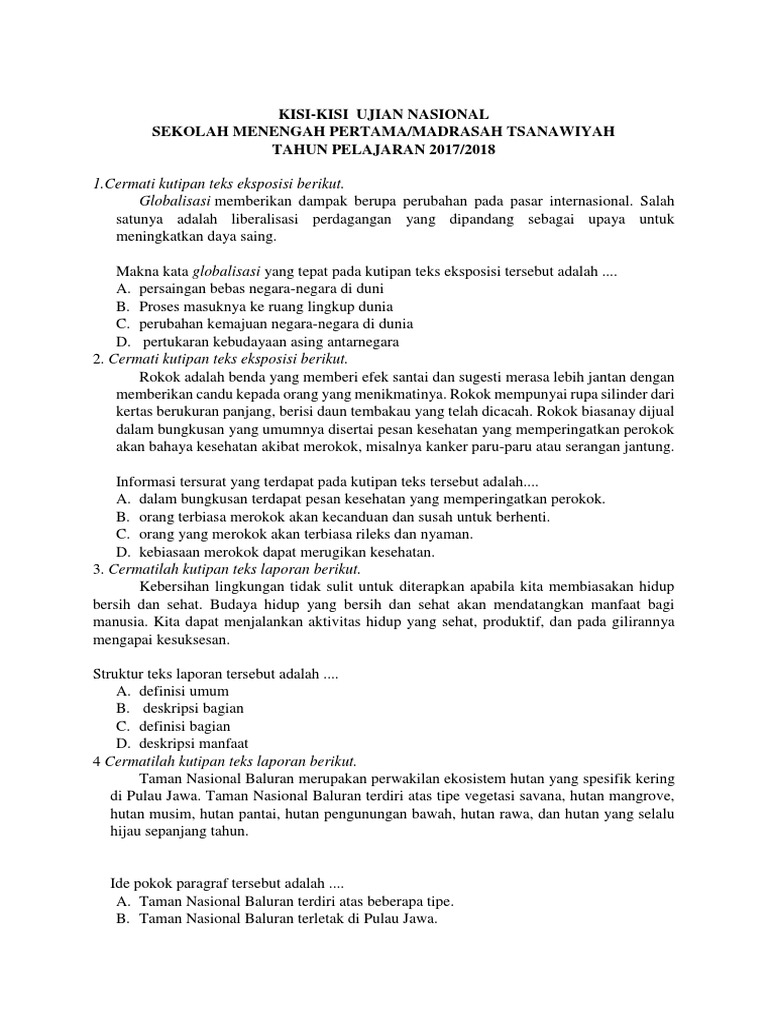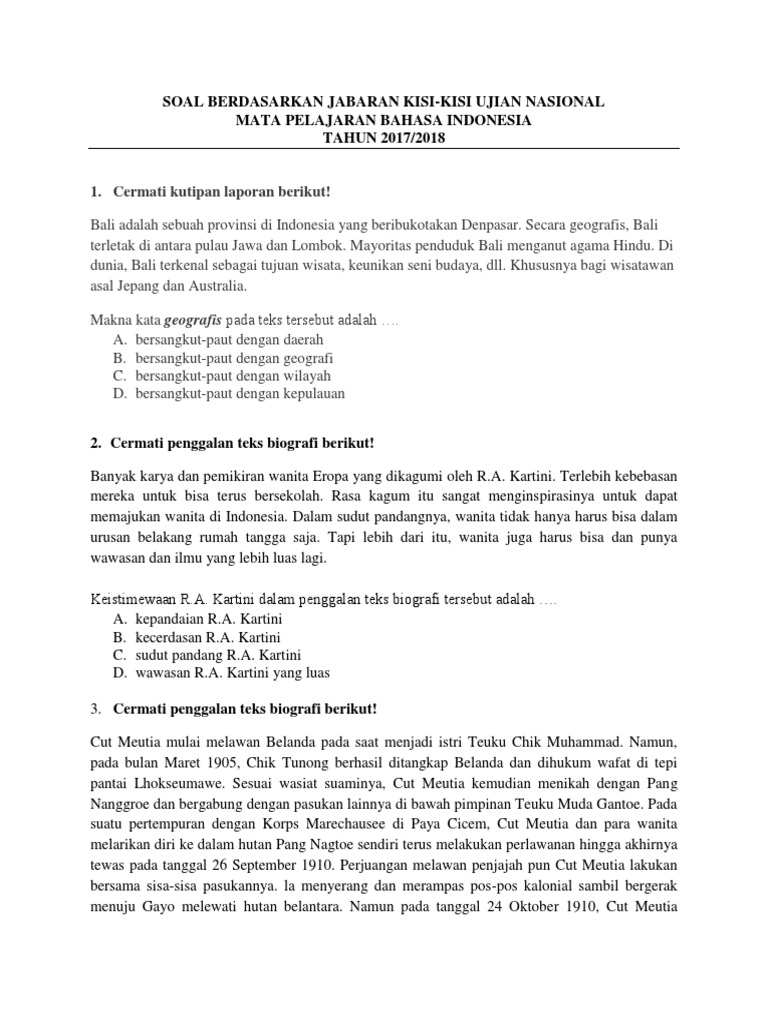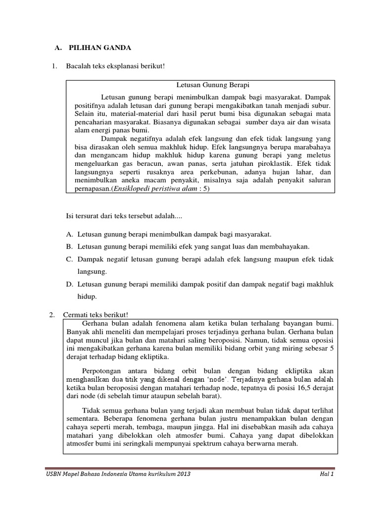 Contoh Soal USBN Mapel Bahasa Indonesia Kurikulum 2013 - PELAJARAN …