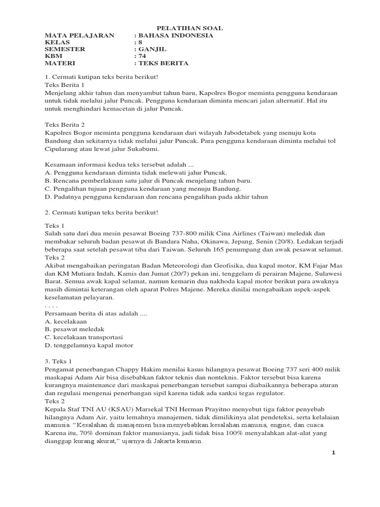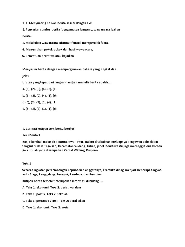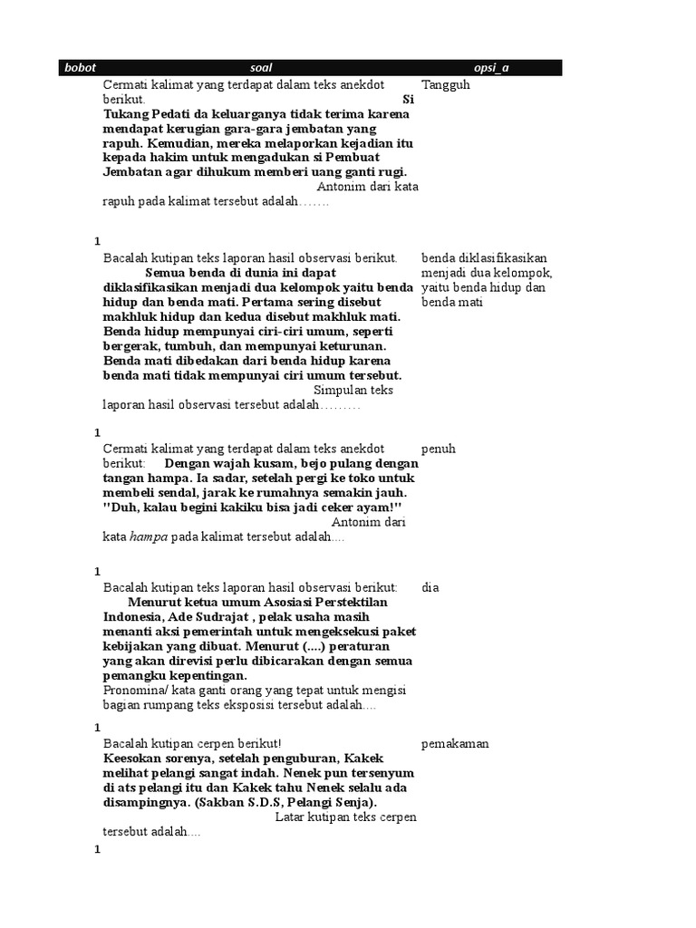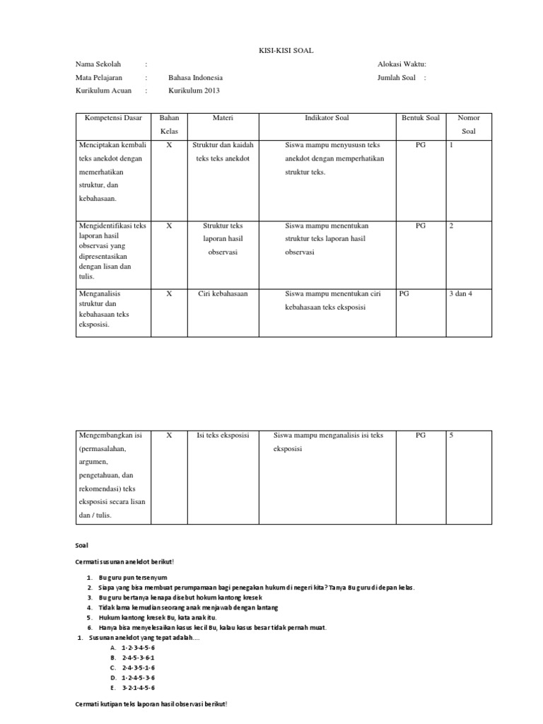 Contoh Soal USBN Mapel Bahasa Indonesia Kurikulum 2013 - PELAJARAN …