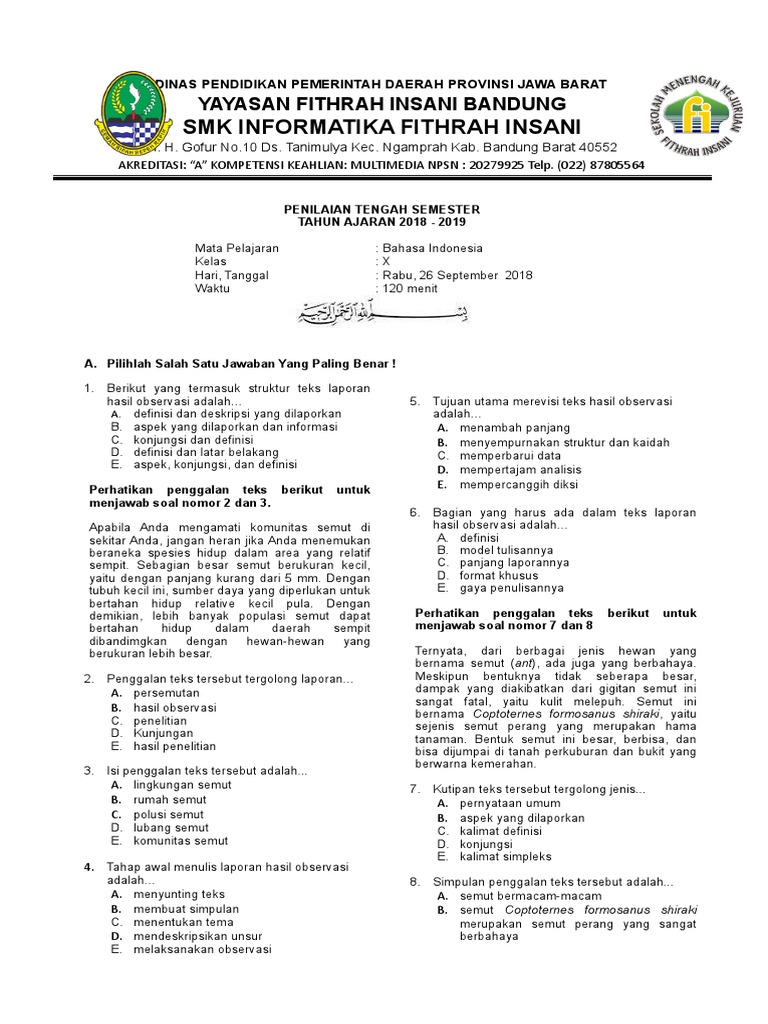 Kumpulan Soal UAS UKK Bahasa Indonesia dan Kunci Jawaban SMA/SMK X …