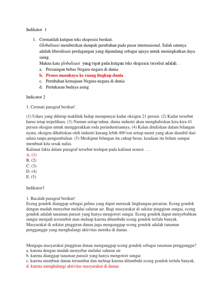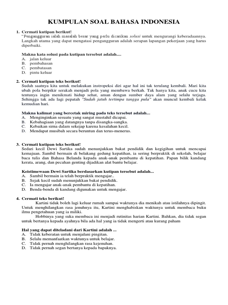 Contoh Soal Bahasa Indonesia - Gudang Sastra