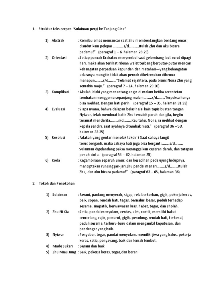 Struktur Teks Cerita Pendek Sulaiman Pergi Ke Tanjung Cina - Berbagai Struktur