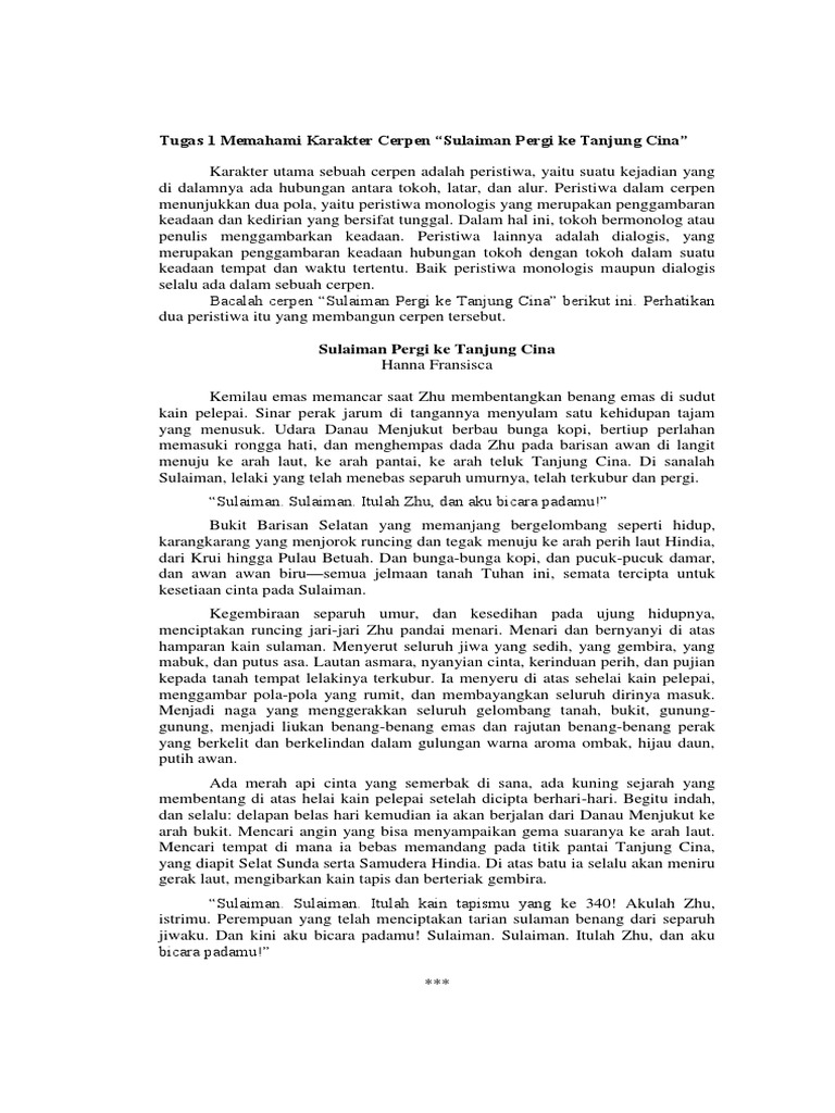 psmk.· Tugas 1 Memahami Karakter Cerpen “Sulaiman Pergi ke Tanjung Cina” … teks cerita pendek