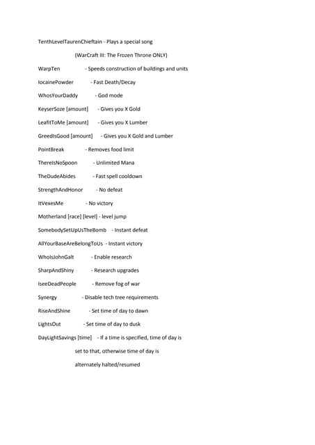 Warcraft 3 Frozen Throne Cheat Codes [Warcraft III: The Frozen Throne] [Tutorials]
