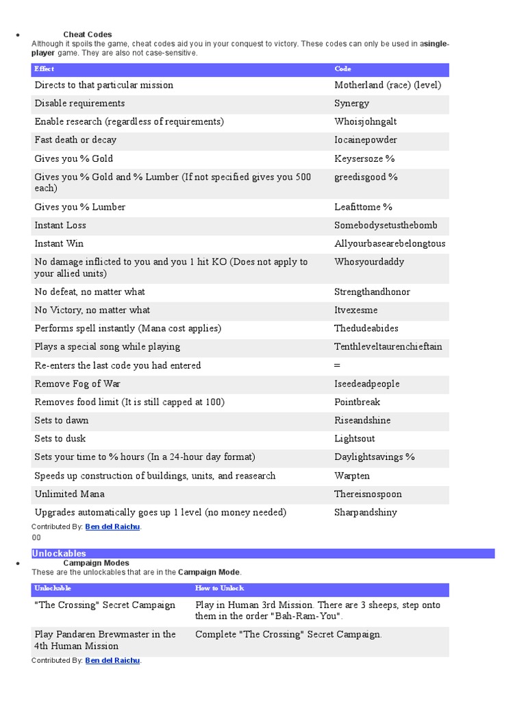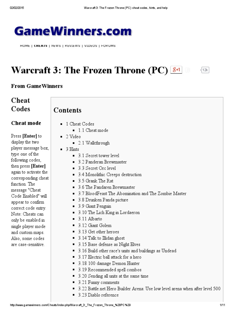 Warcraft 3_ The Frozen Throne (PC) cheat codes, hints, and help.pdf | Races And Factions Of Warcraft | Leisure