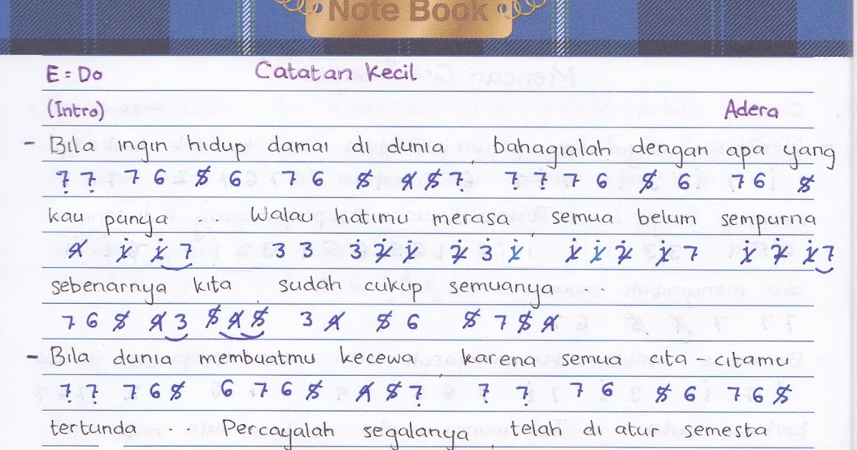 Chord Adera Catatan Kecil, Bila ingin hidup damai di dunia (Kunci …