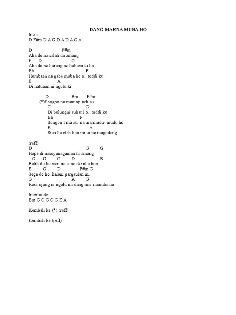 Dang Marnamuba Ho (feat. Willy Hutasoit) Chords - Chordify