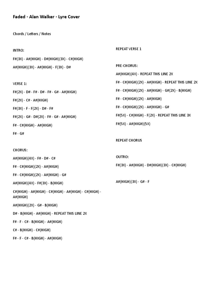 Alan Walker Faded Piano Chords Notes, Sheet Music