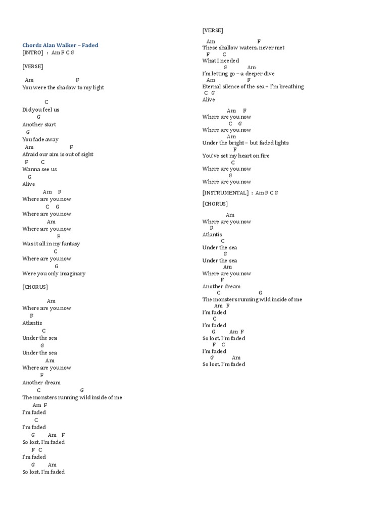 Chord Alan Walker - Faded | Kunci Dasar Gitar & Lirik Lagu Terbaru …