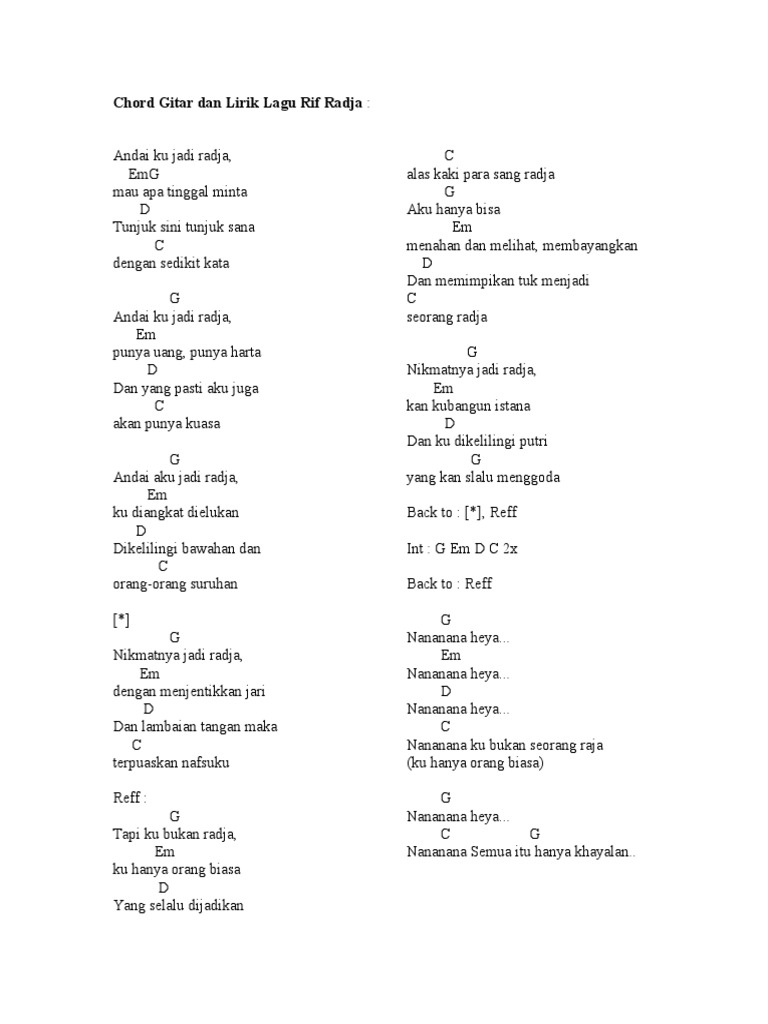 Lirik Dan Kunci Gitar Lagu /rif - Radja - CILACAP CHORD’S : Kunci Chord Gitar Dasar.