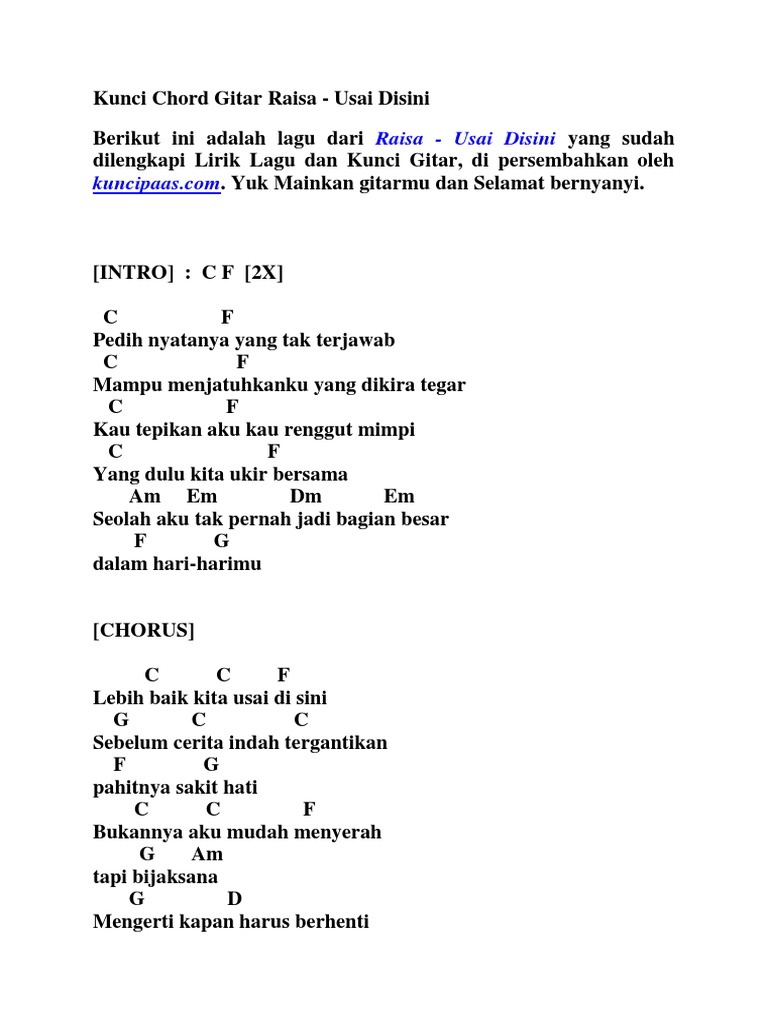 Raisa - Usai Di Sini Chord | LirikdanKunci.com - Lirik dan Kunci …