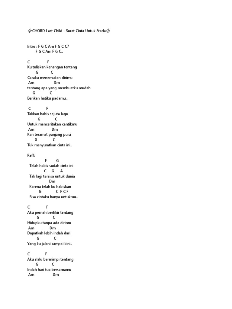 Chord Lagu - Virgoun (Last Child) - Surat Cinta Untuk Starla - Wattpad