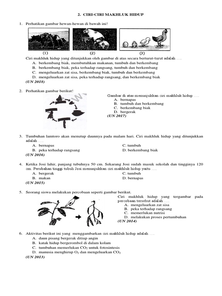 Contoh Soal Ciri - Ciri Makhluk Hidup SMP 1 | idschool