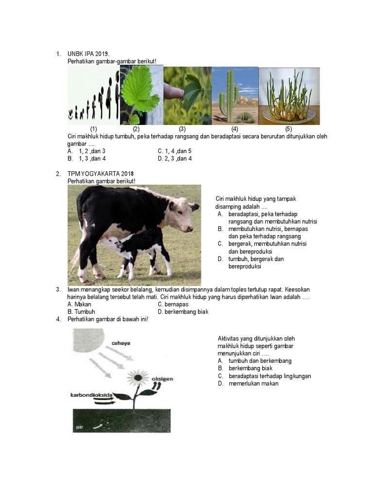 26. Perhatikan gambar berikut! Ciri mahluk hidup yang ditunjukkan dalam gambar berikut adalah… - PDF Free Download