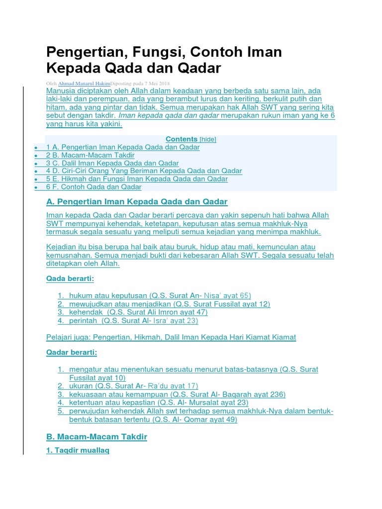 Contoh artikel: Contoh Artikel Qadha Dan Qadar
