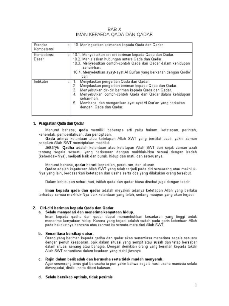 Top PDF PAI Kelas 9. Bab 10. Beriman Kepada Qada dan Qadar - 123dok.com
