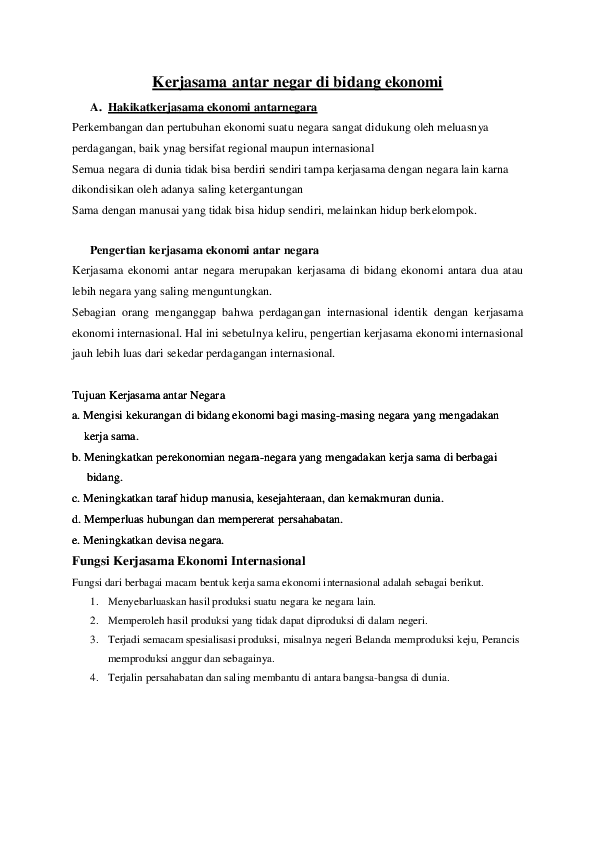 URAIAN MATERI KERJASAMA EKONOMI INTERNASIONAL - PDF Download Gratis