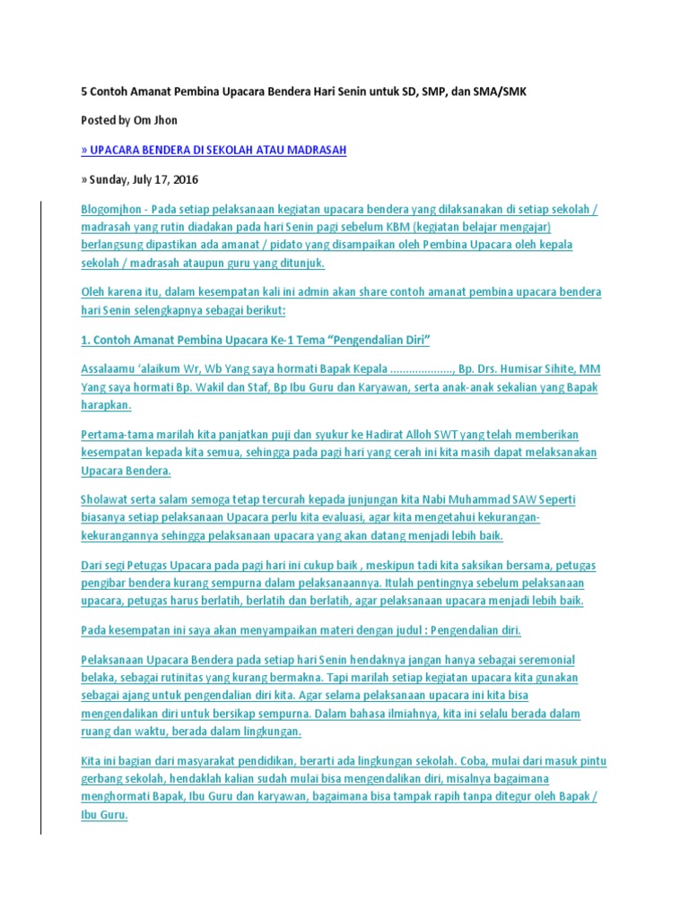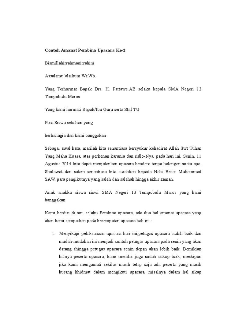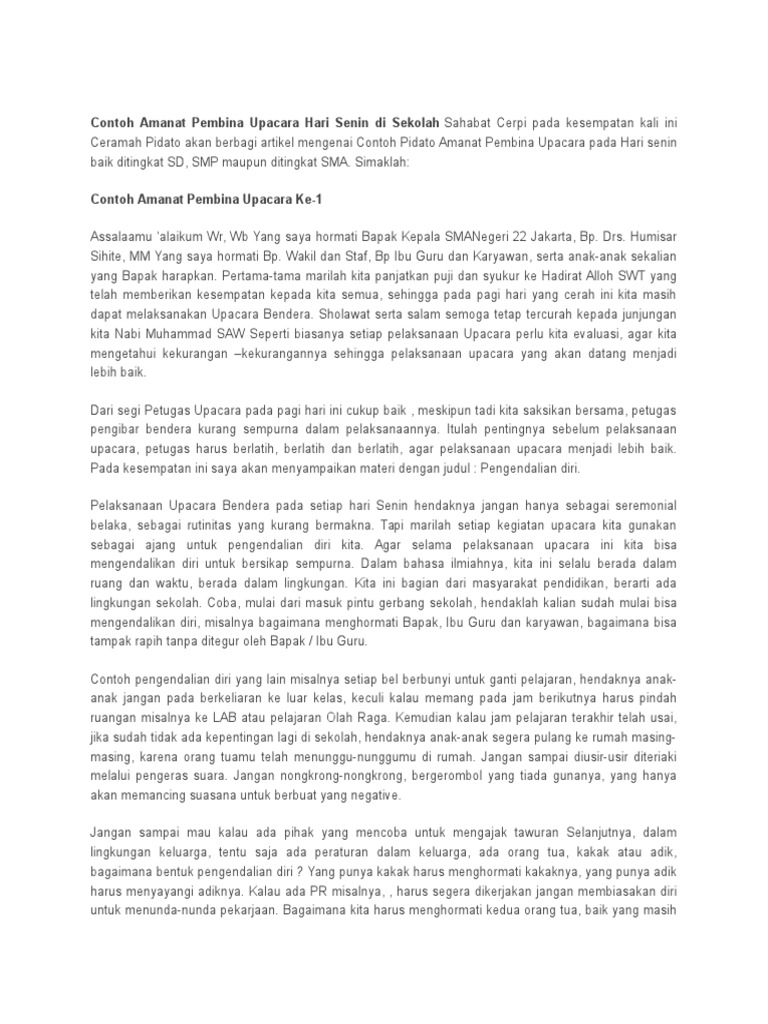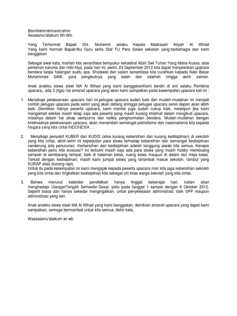 Contoh Amanat Pembina Upacara Hari Senin Di Sekolah - [PDF Document]