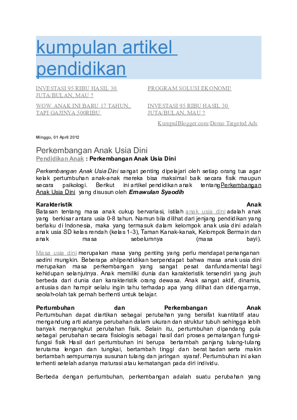 artikel pentingnya pendidikan anak usia dini bagi tumbuh kembang anak | endahpujilestari1110029