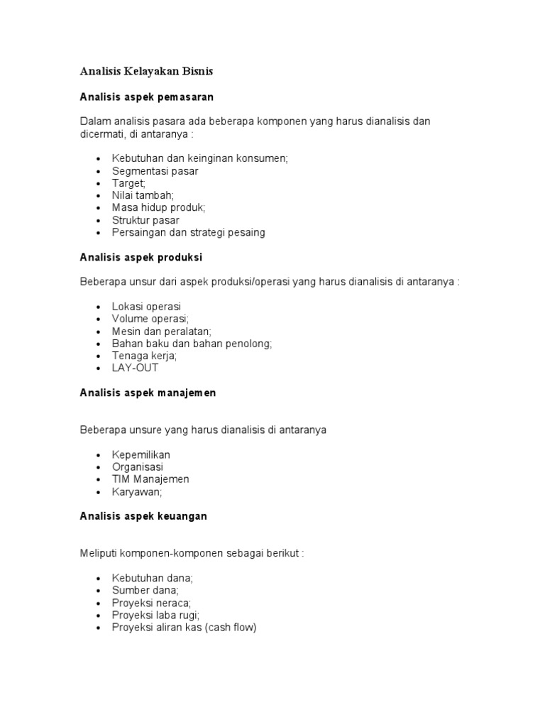 Aspek Studi Kelayakan Bisnis Pdf - namasaf