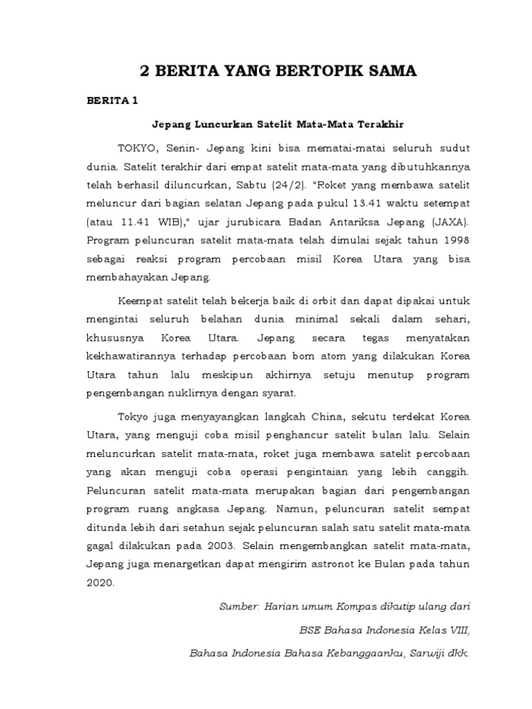 Contoh 2 Teks Berita Bertopik Sama - Berbagai Teks Penting