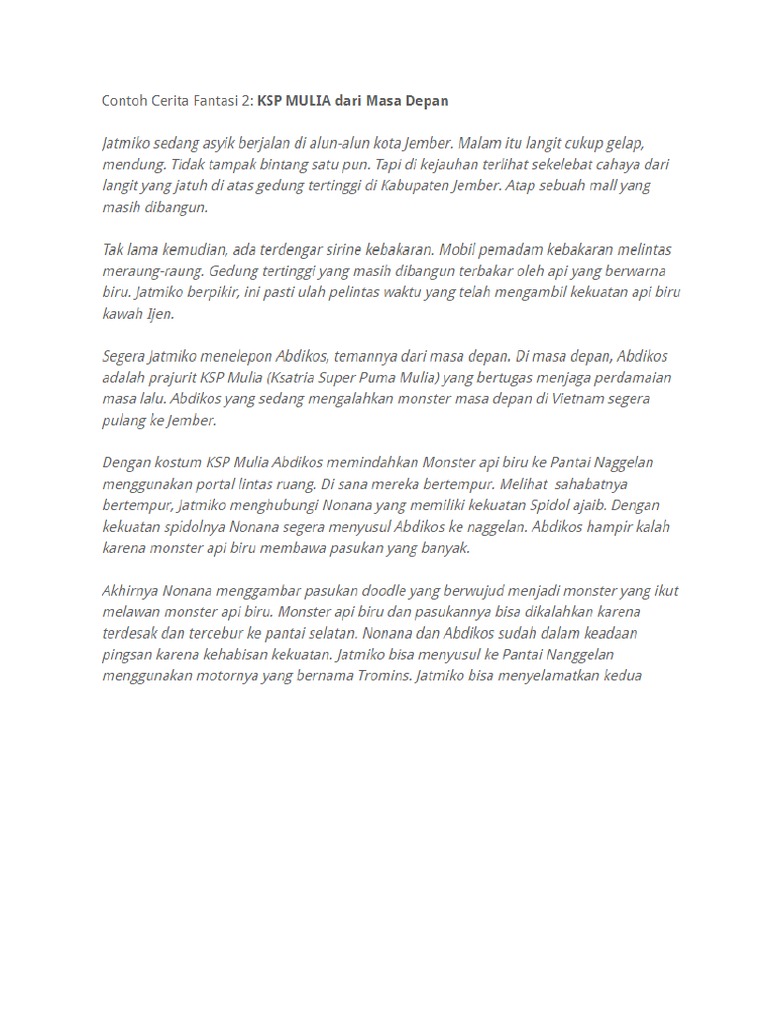 Contoh Cerita Masa Depan