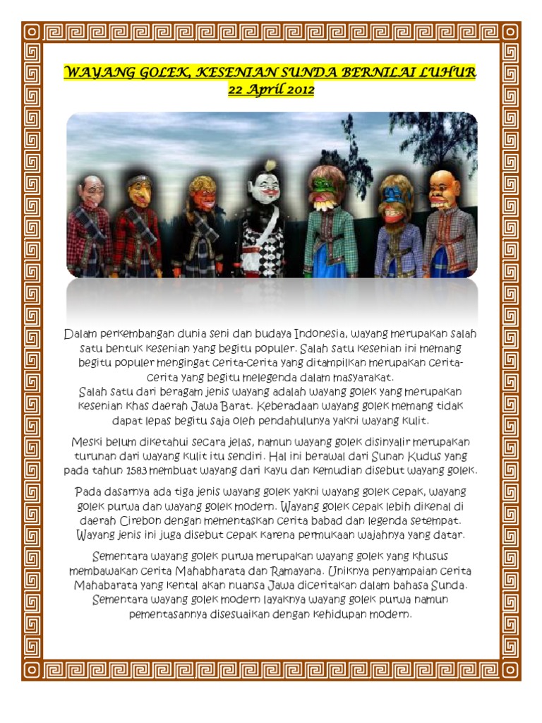 Contoh Artikel Bahasa Sunda Tentang Kesenian Wayang Golek - SundaPedia.com