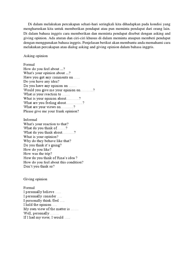 Percakapan Bahasa Inggris: Asking and Giving Opinion (text and …