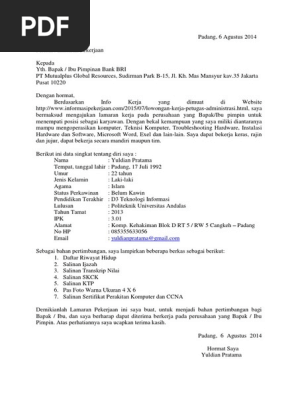 48 Contoh Surat Lamaran Kerja Pt Mutualplus Global